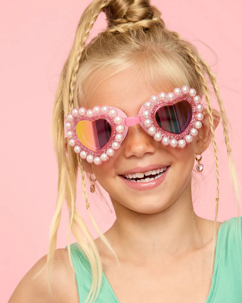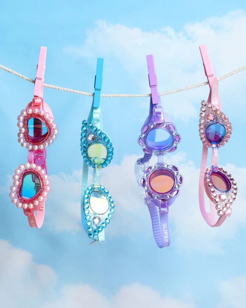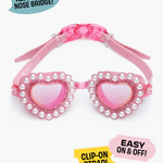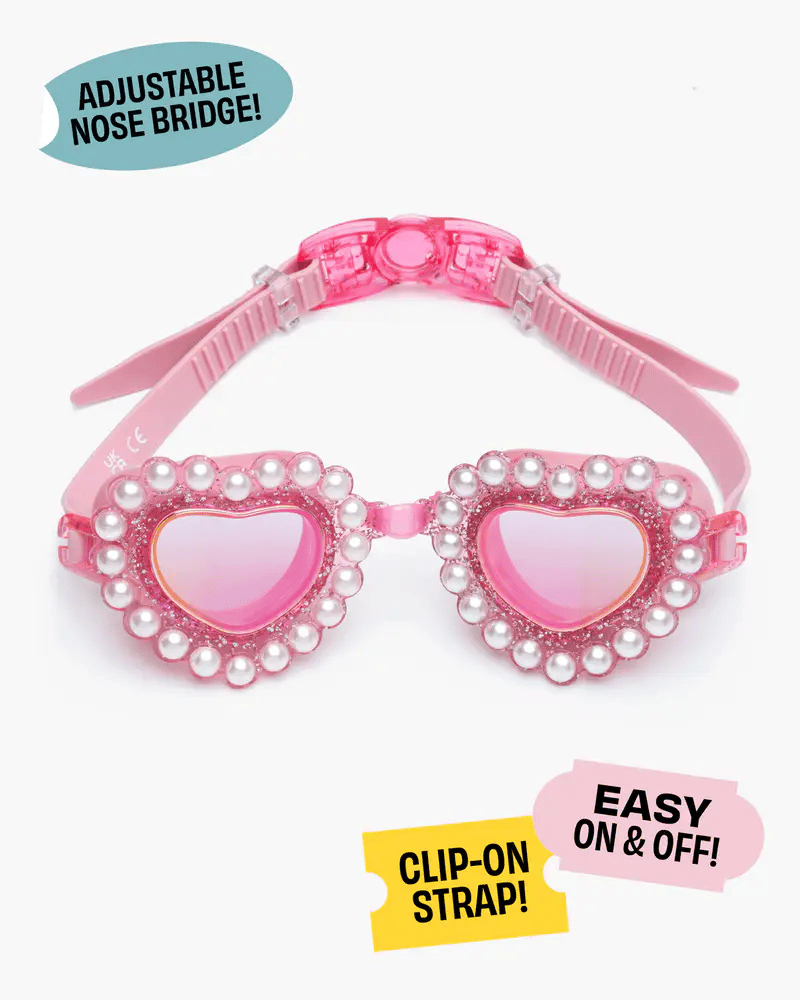 The Heartfelt Super Goggles are bringing the love to swim time with heart-shaped lenses framed by sweet pearls and sparkles that make every dive feel like a dream.