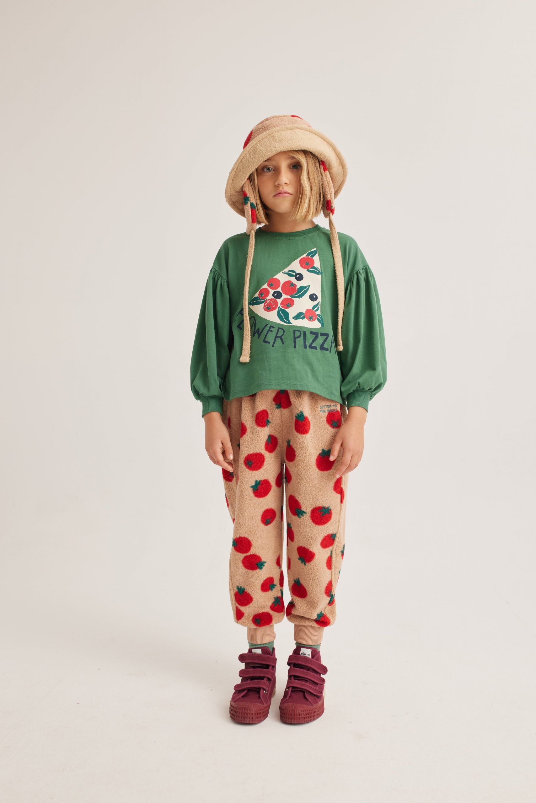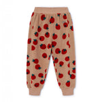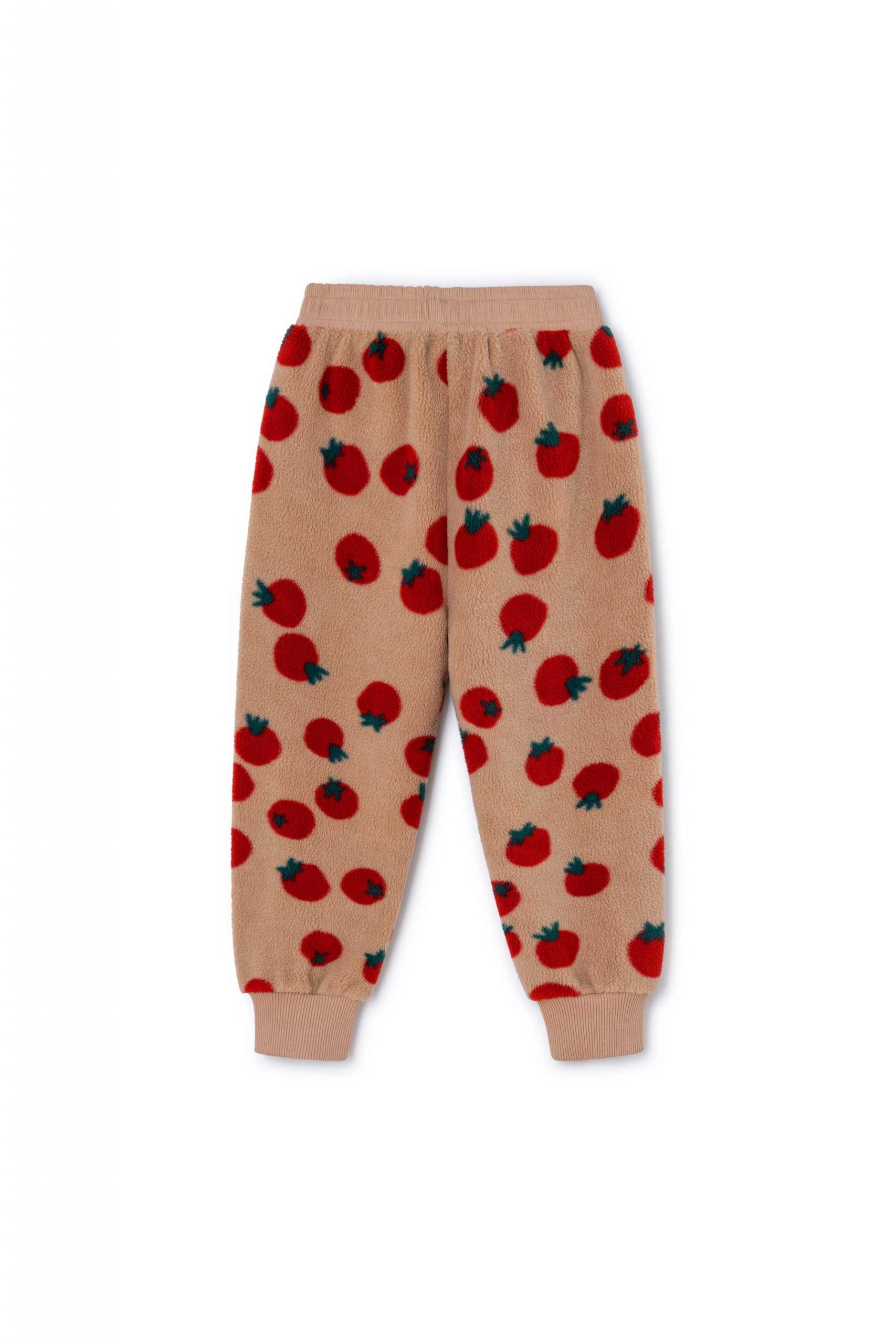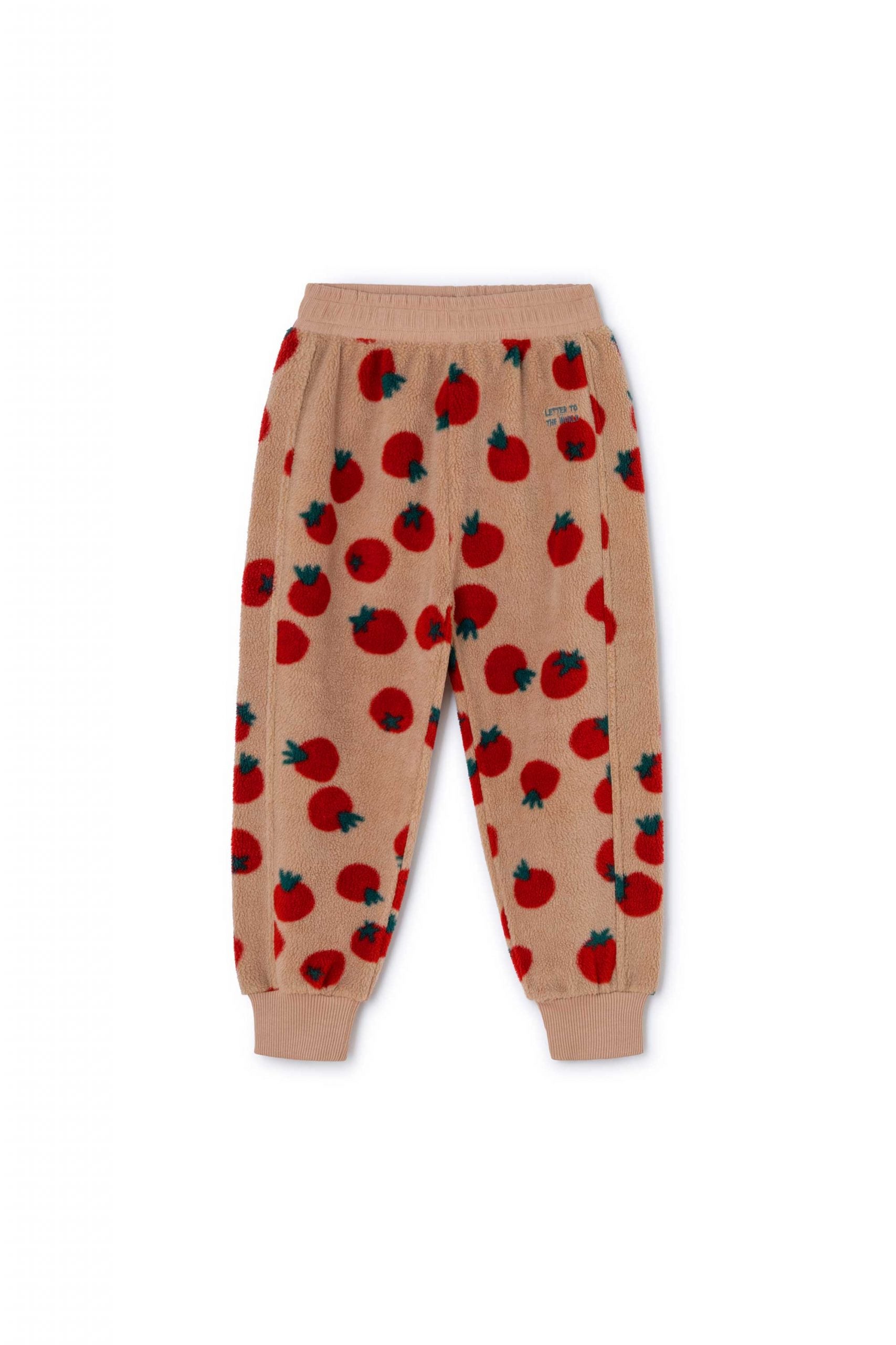 100 % polyester intersoft joggers in oat color. Waistband and ribbed cuffs. Tomatoes placement print. Overall oversized fit.