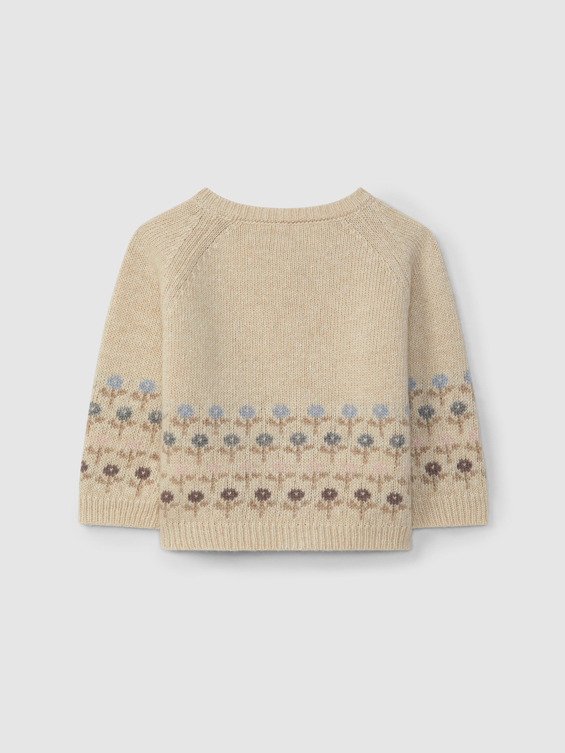 Knitted cardigan with jacquard in merino wool, recycled polyamide, and a touch of cashmere.