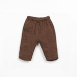 These pants are made of organic cotton jersey, in a brown color.