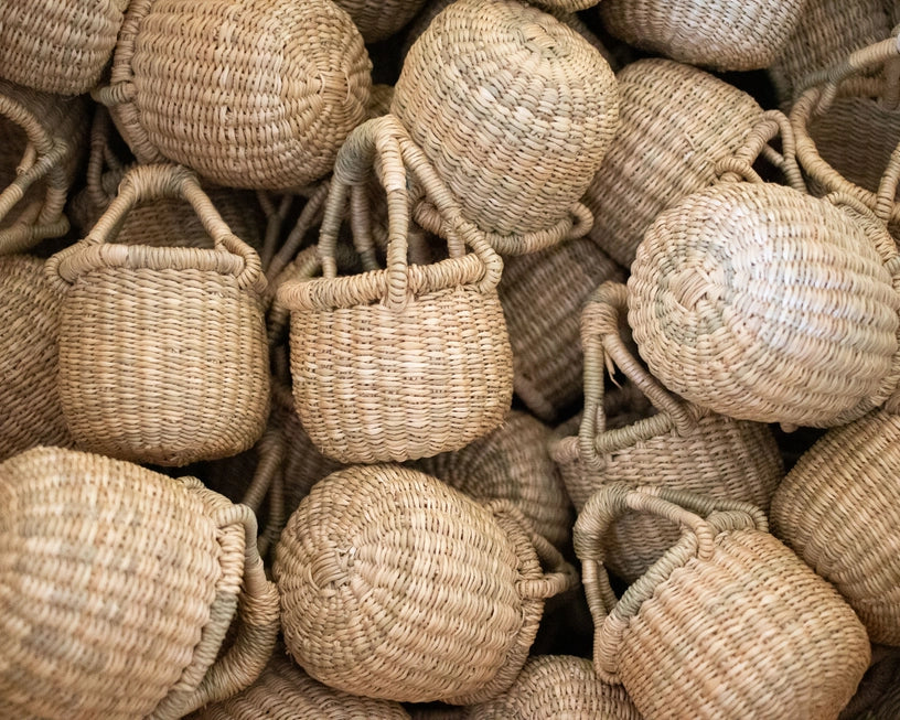 They are woven from durable elephant grass Each purchase helps provide the farmers and weavers in the region with a sustainable way of living. We love seeing our designs come to life through the skill of our artisans.