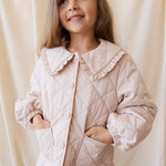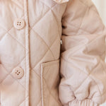 Wrap your little one in warmth and whimsy with the Kora Jacket in Berry Cloud, a beautifully quilted puffer jacket on a soft pinky-berry base.