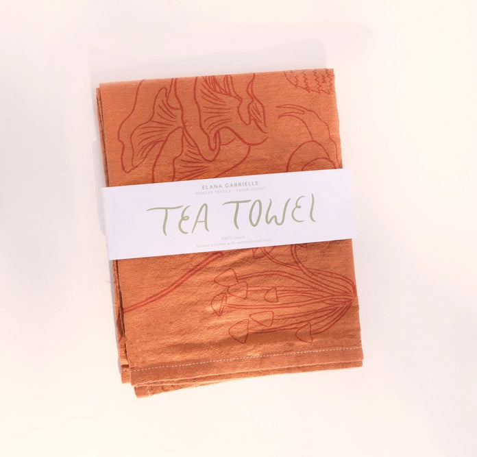 The Mushrooms Tea Towel is inspired by mossy forest walks, loamy soil, and mushroom season meals.