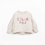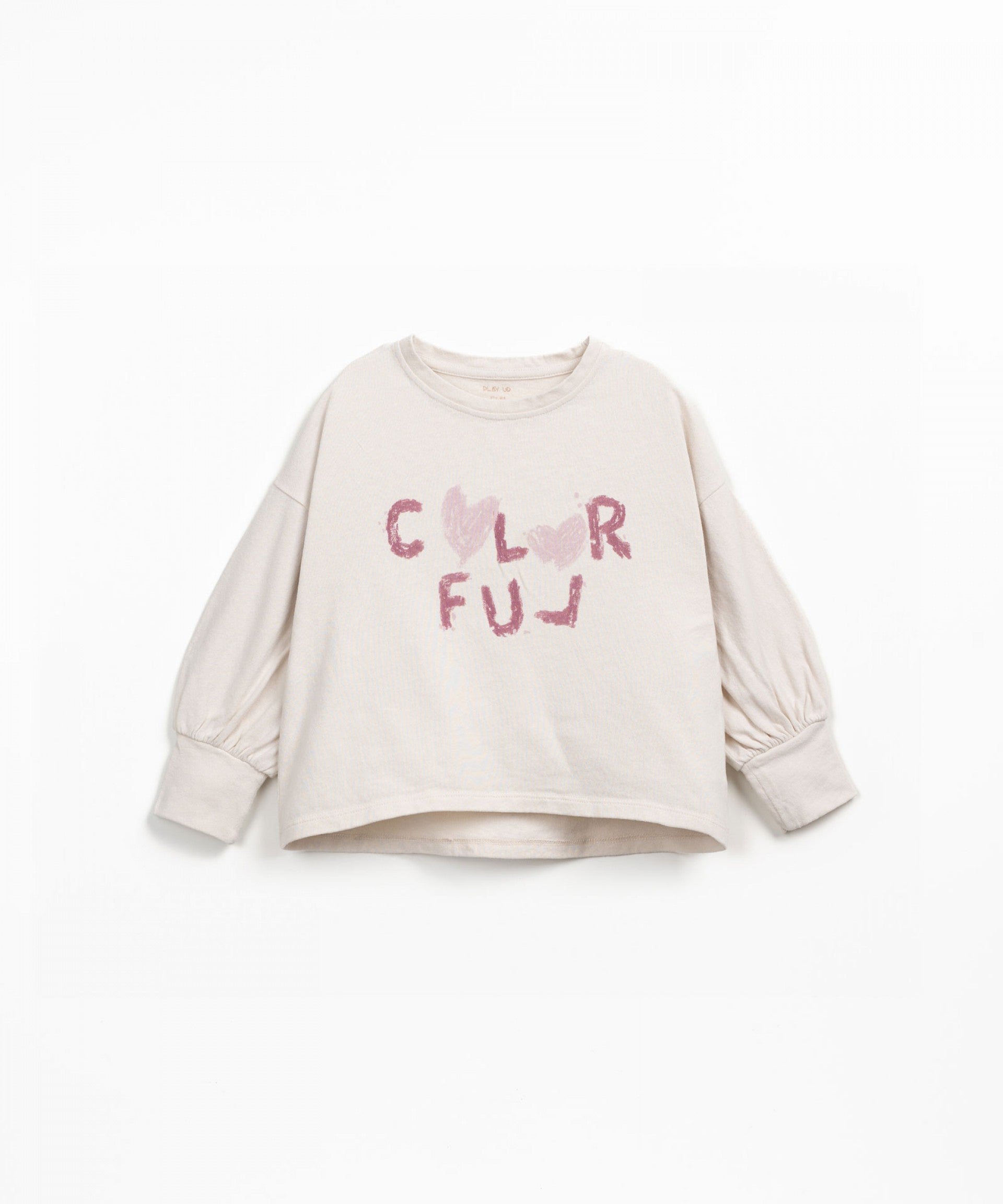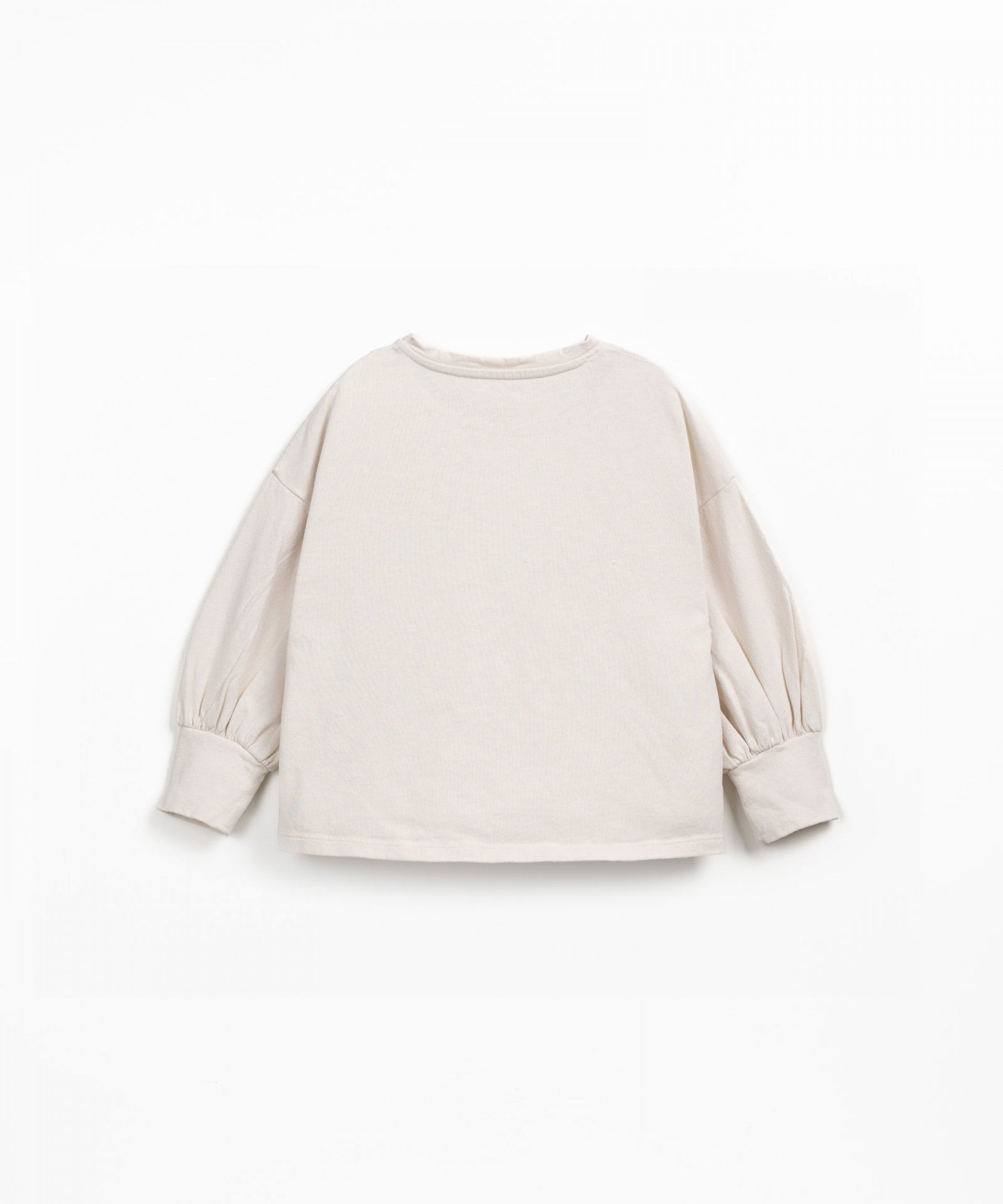 This t-shirt is made from jersey fabric with a blend of organic cotton and recycled cotton, in an off white color.
