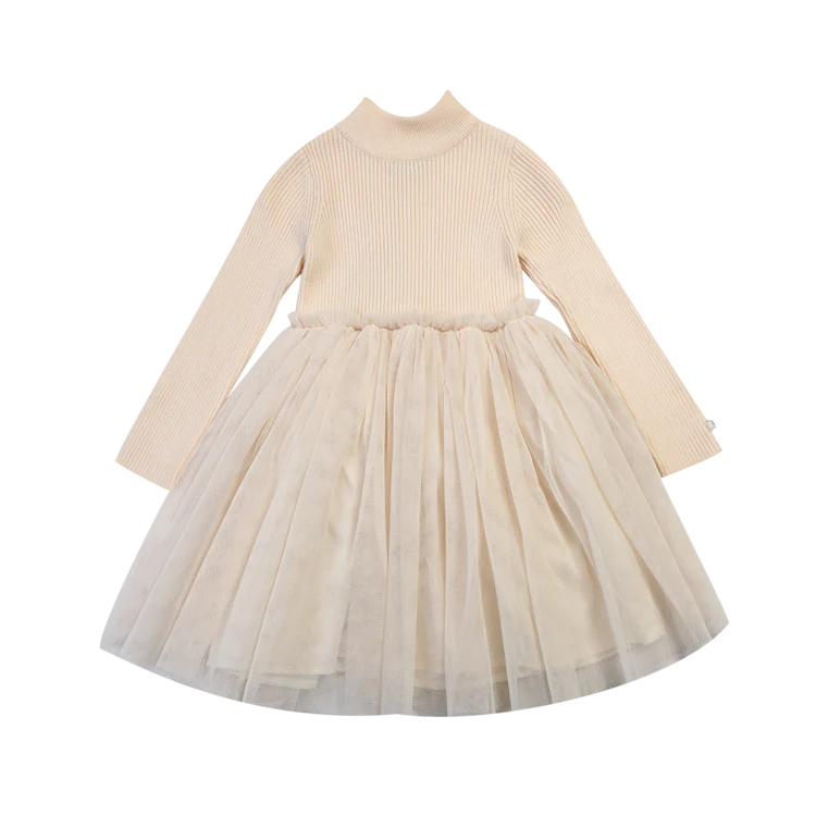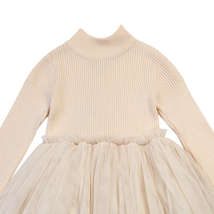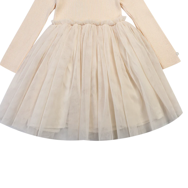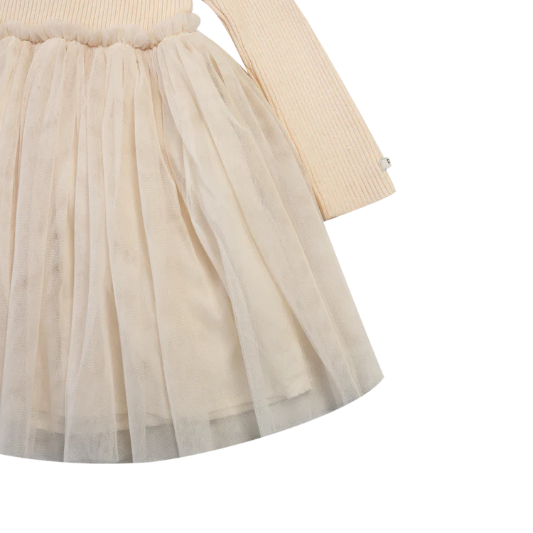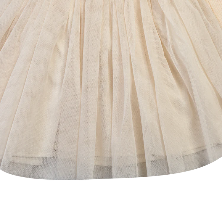 Ballerina dreams! This beautiful dress with a tulle skirt will turn your baby girl into a fairy!