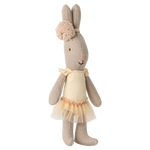 The well known Maileg micro bunny dressed up as a ballet dancer. It wears a suit and tulle skirt and has a small decoration around the pointing ears.