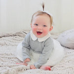 Long sleeve knitted top bodice in heather grey paired with a cute peter pan collar in pure white.