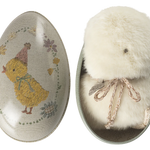 A small plush toy which is perfect for a tiny hand. The mini sized chicken has the sweetest look and a very soft hand feel. The small legs are made of knitted string with golden effect.