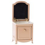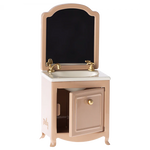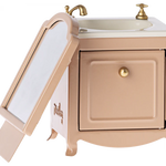 A beautiful item for the royal bathroom in the Maileg mouse castle. It has a small closet under the sink and of course a mirror as well. The mirror is removable for extra decorating options!
