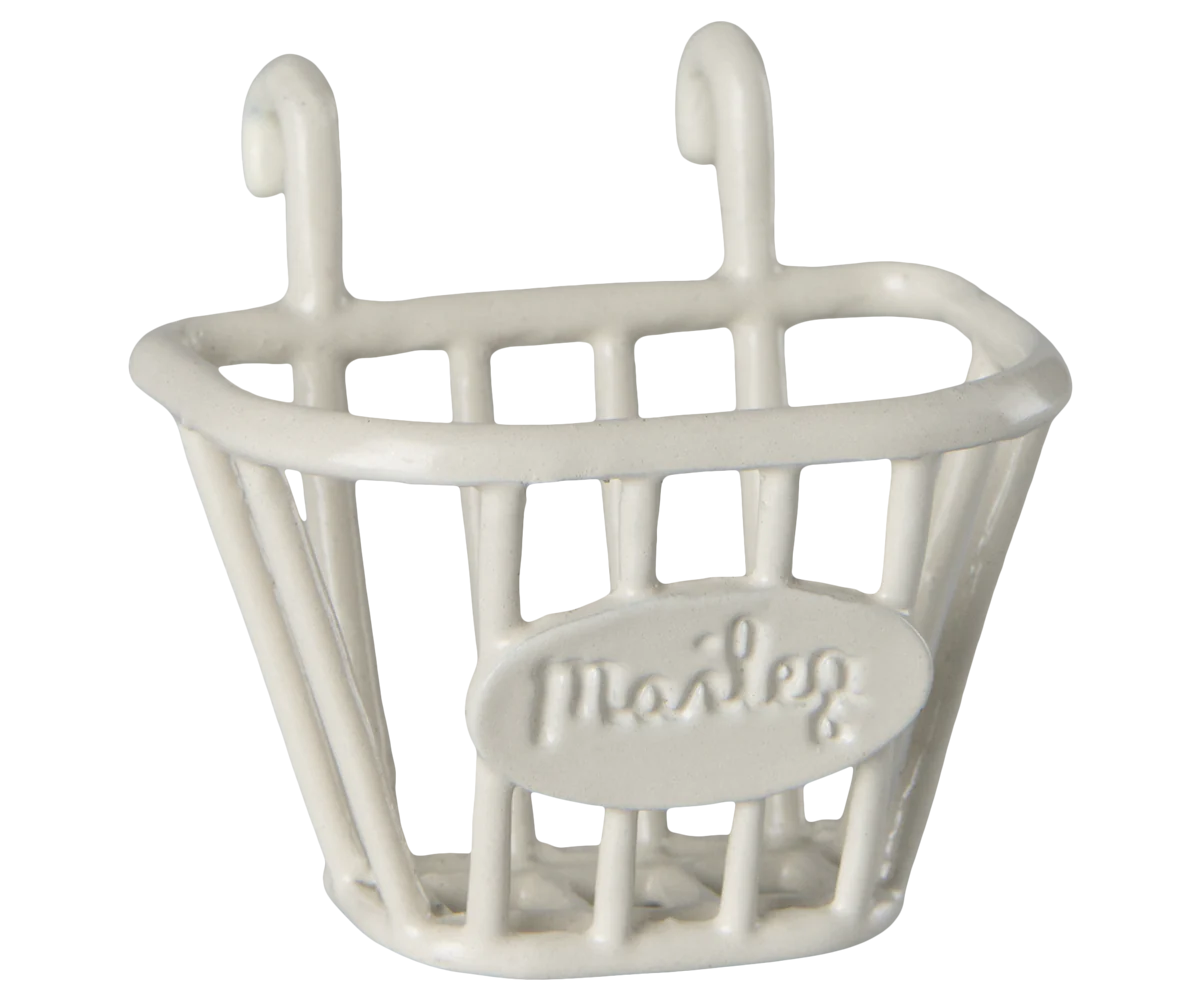 This metal basket fits Maileg tricycles. Place it on the handlebar and your mouse will always have storage space on the go, for any belongings.