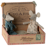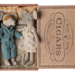 A classic Maileg item. Mum and Dad mice are wearing their beautiful nightwear and eye masks. The cigar box is a perfect bed for a good night’s sleep and sweet dreams. Bed linen may vary in color.