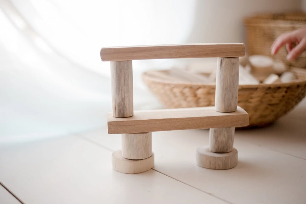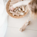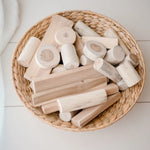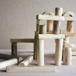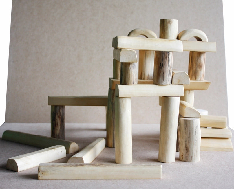 This natural barkless tree block set includes 42 pieces of beautiful natural colored timbers.