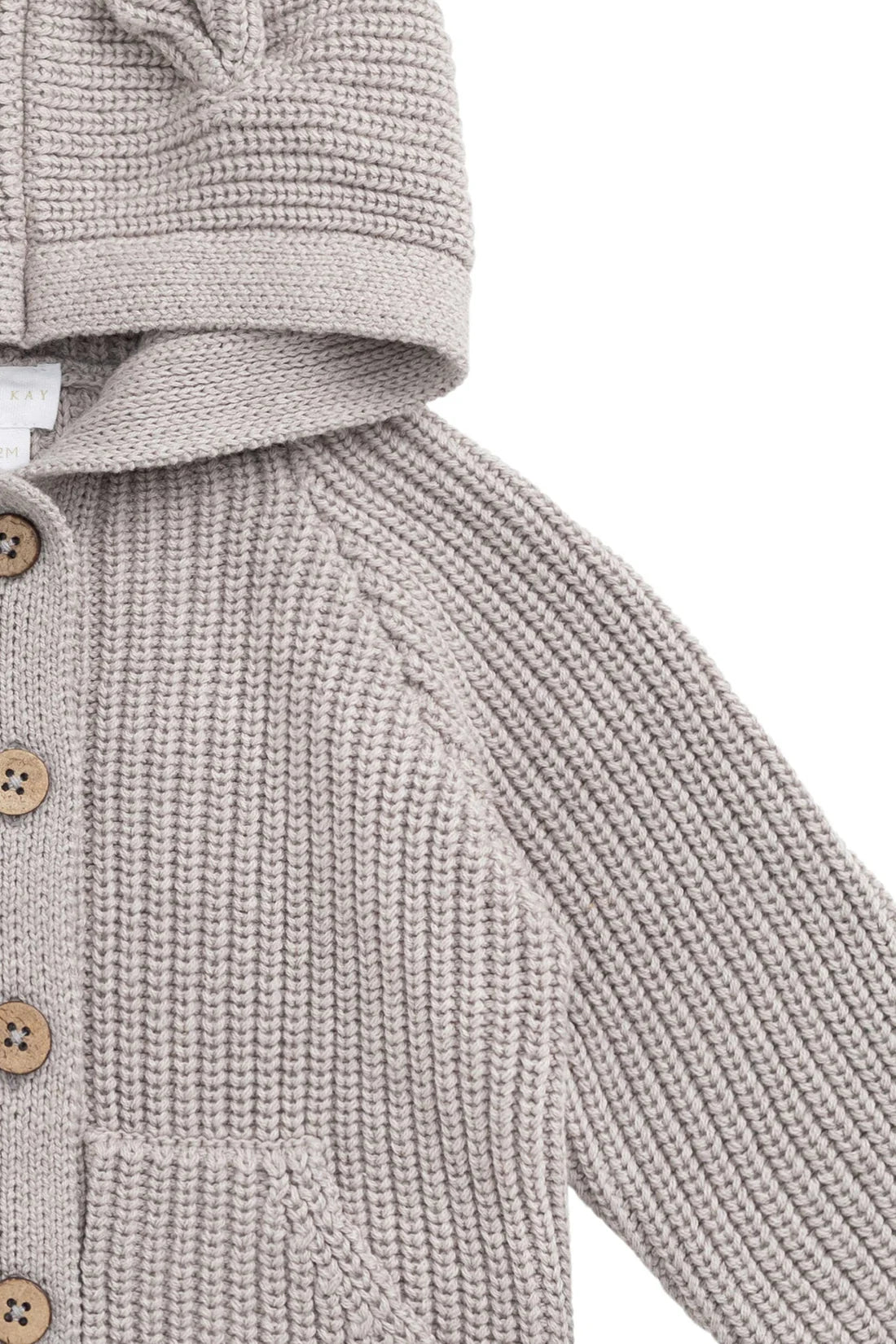 The OG Bear Knit in Moleskin Marle is a beloved Jamie Kay classic, designed to bring warmth and whimsy to your little one’s wardrobe.