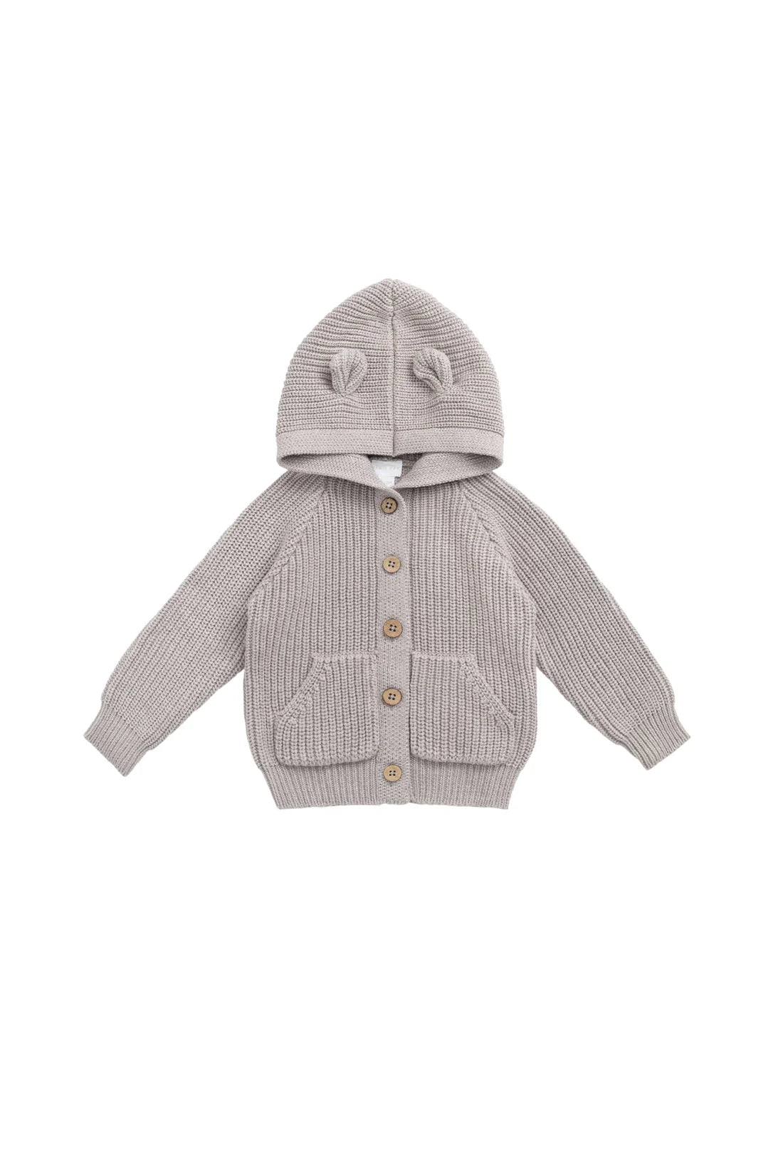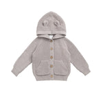 Featuring adorable bear ears on the hood, buttons down the front, and two practical front pockets, this cardigan is both playful and practical - perfect for layering on cooler days.