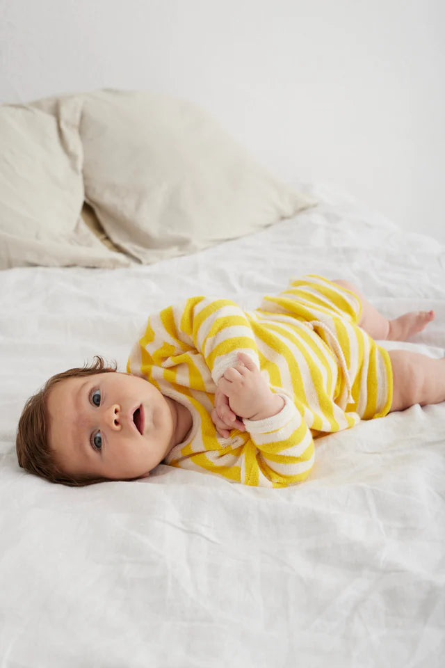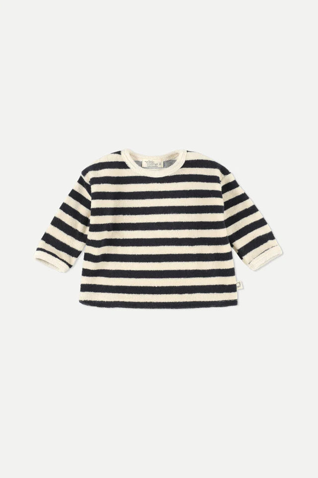 Striped sweatshirt in a super fluffy, comfy, organic cotton towel fabric.