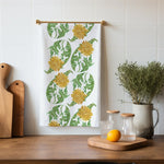 This kitchen tea towel features a center stripe watercolor paisley design of a chrysanthemum set against a white background. The design is a perfect fall themed home decor accent piece and measures 17.7 x 27.6 “.
