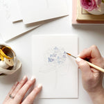 You'll receive eight cards with two of each illustration: hydrangea, garden rose, delphinium and daisy.