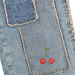 Signature hand-embroidered cherry detailing on Wild Wawa label.