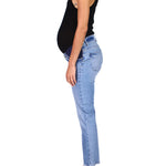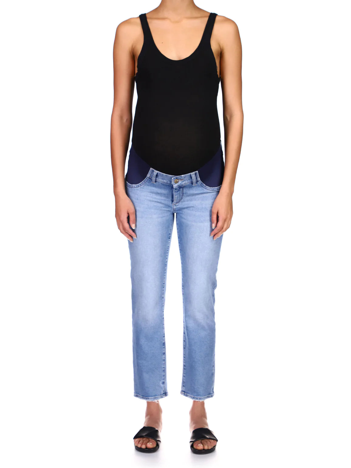 Patti is a vintage straight fit with a 27" inseam that is relaxed through the leg. It features stretch paneled pockets for ultimate comfort through every trimester.