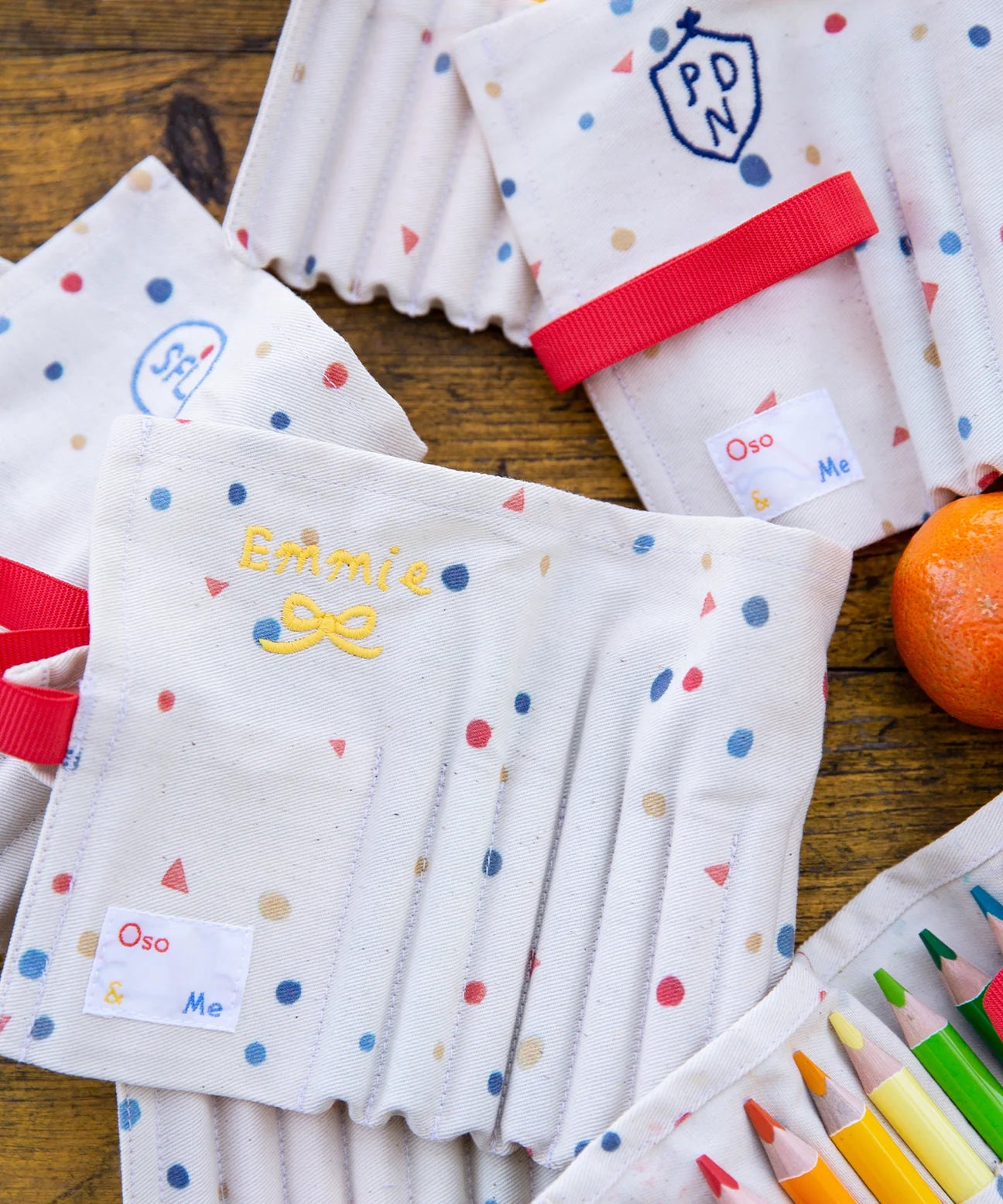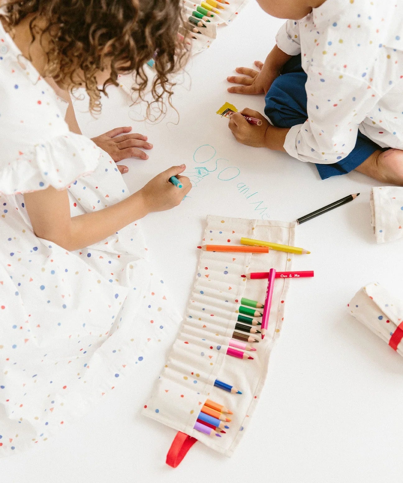 Equipped with Oso & Me triangle pencils in a rainbow of 18 colors, the case is crafted in sturdy dot print canvas.