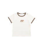 Featuring a charming bear illustration on the front and contrast trim around the neckline and sleeves, this tee blends comfort with playful style. Its breathable fabric and relaxed fit make it perfect for layering or wearing solo on warmer days.