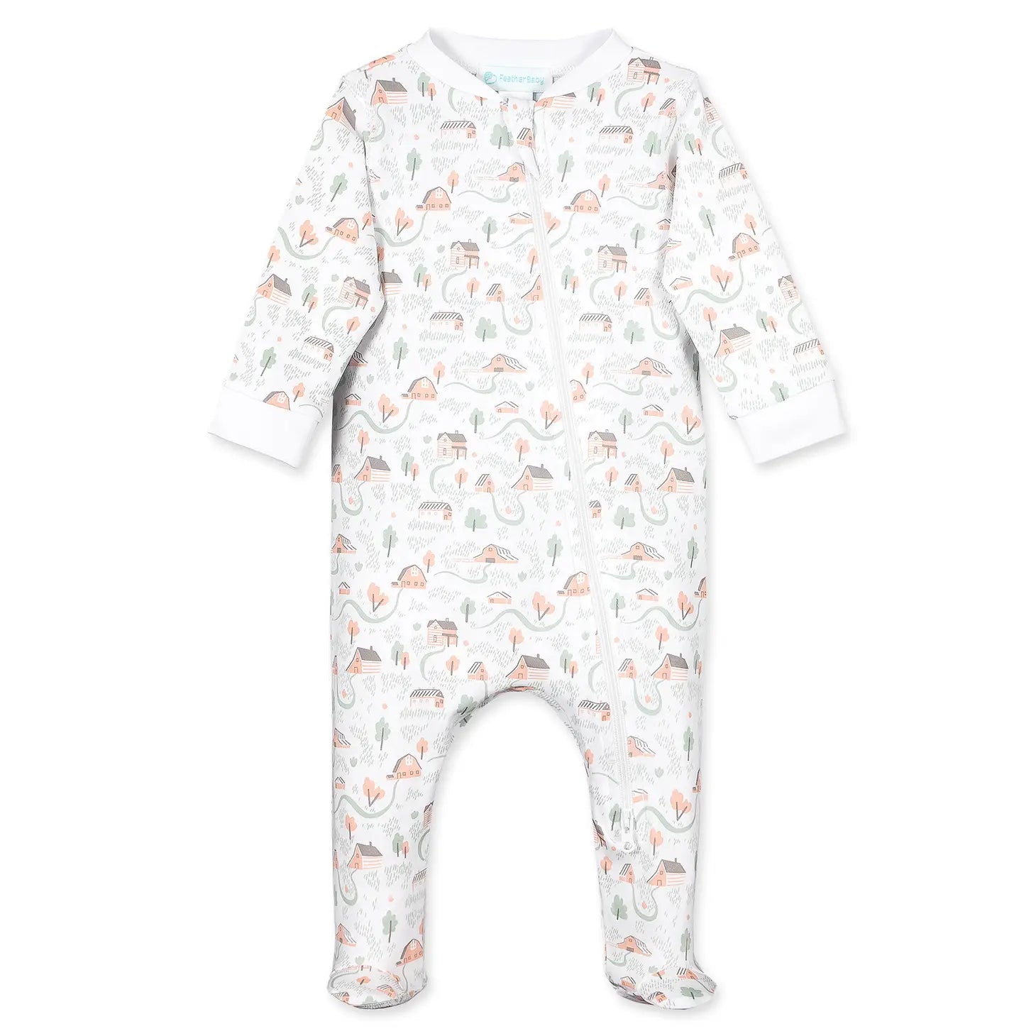 New 2-way zipper for easier diaper changes. For added comfort, there's a flap of fabric inside the collar to cover the zipper and protect the baby's sensitive skin.
