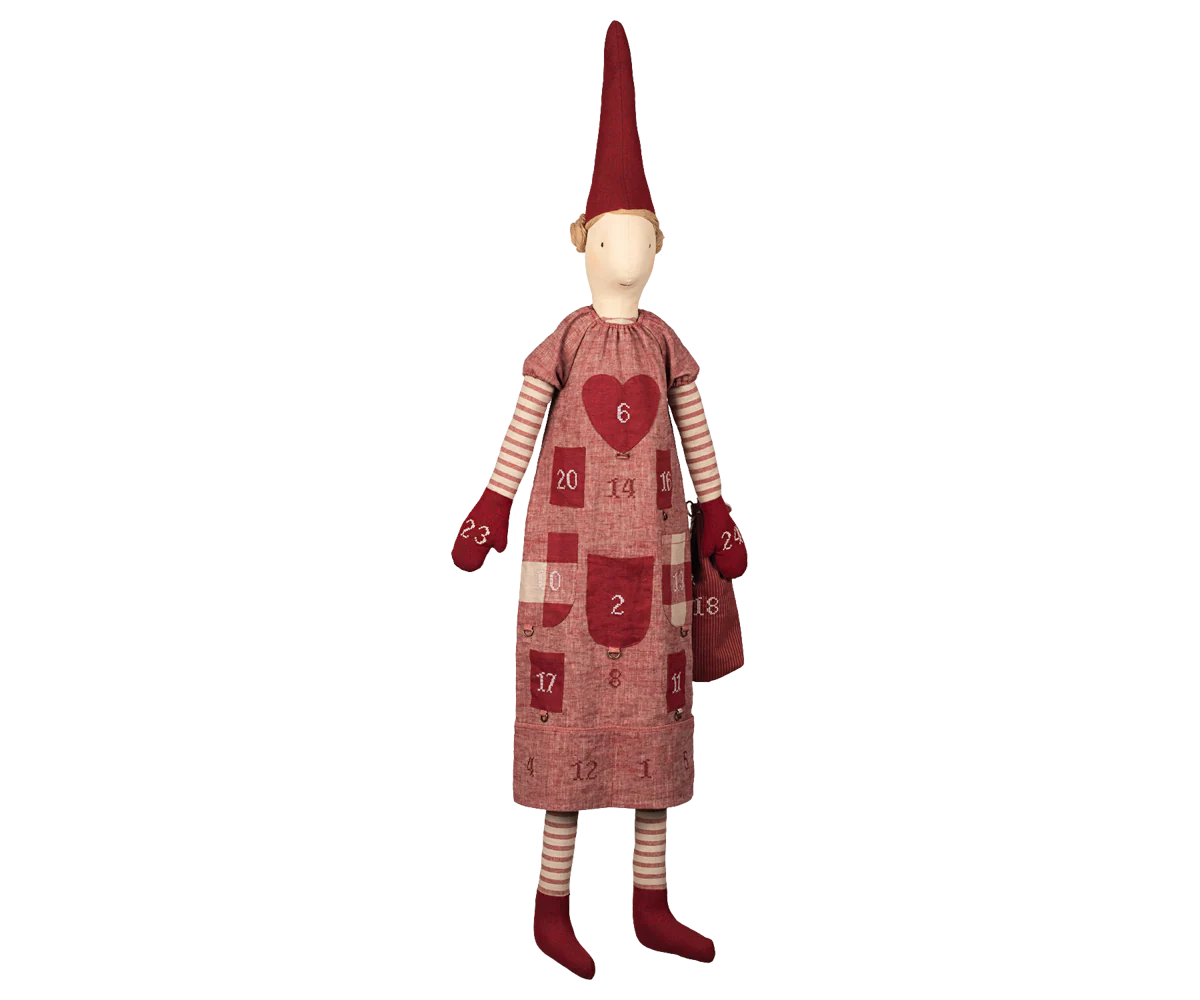 The calendar girl has 24 rings/pockets to fasten small treats - one for each day before Christmas.