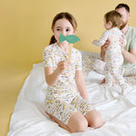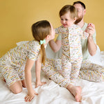 The no drama pajama short sleeve set comes complete with magnets at the neck so kids can dress themselves before bed. (read: no over-the-head struggles.)