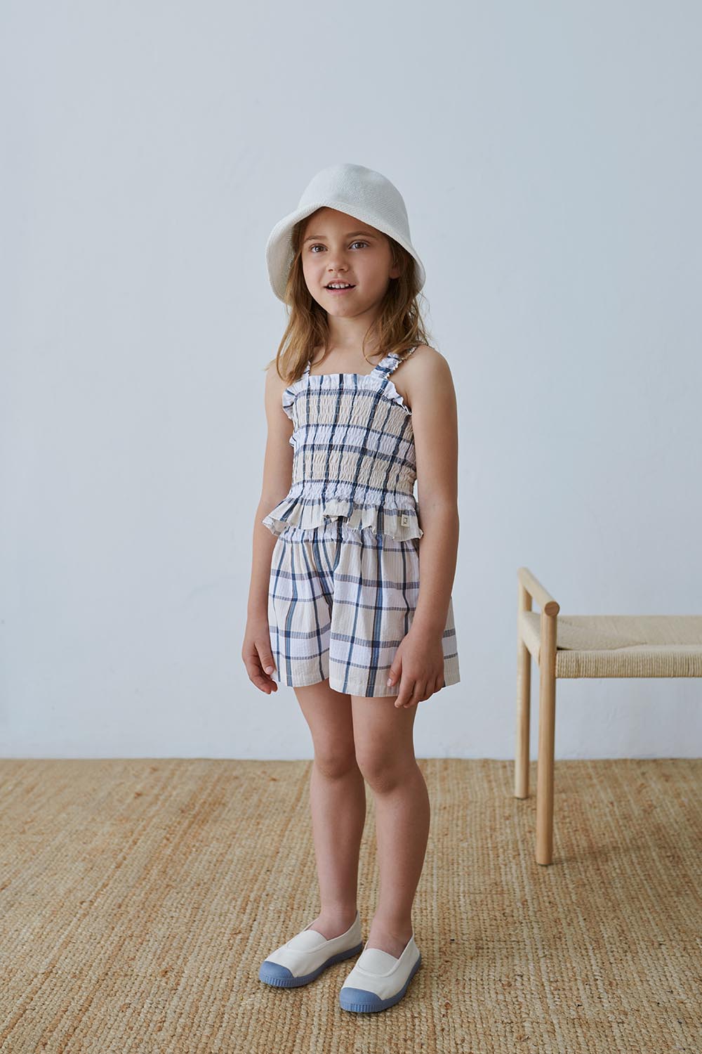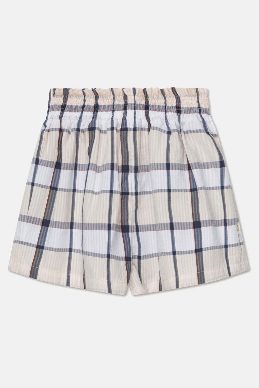 Plaid lovers, these are your shorts. Designed in a seersucker plaid pattern, these organic shorts feature a shirred waist. Wear them with their matching top or with a solid-colored tee. These organic shorts are woven in 100% GOTS-certified organic cotton.