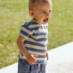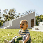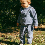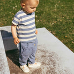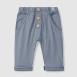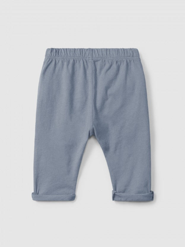 Pull-up pants in cotton jersey knit. Decorative placket with wooden buttons and functional pockets. Cuffs can be used rolled up or rolled down for greater durability.