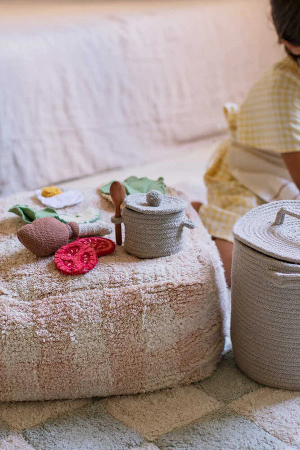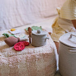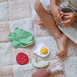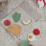 What’s cooking for today? Lorena’s kitchen has everything kids need to whip up something delicious! And what could be more fun than pretend cooking with this cute textile food set including ingredients for a veggie taco! Looks like their dinner is already taken care of!