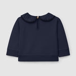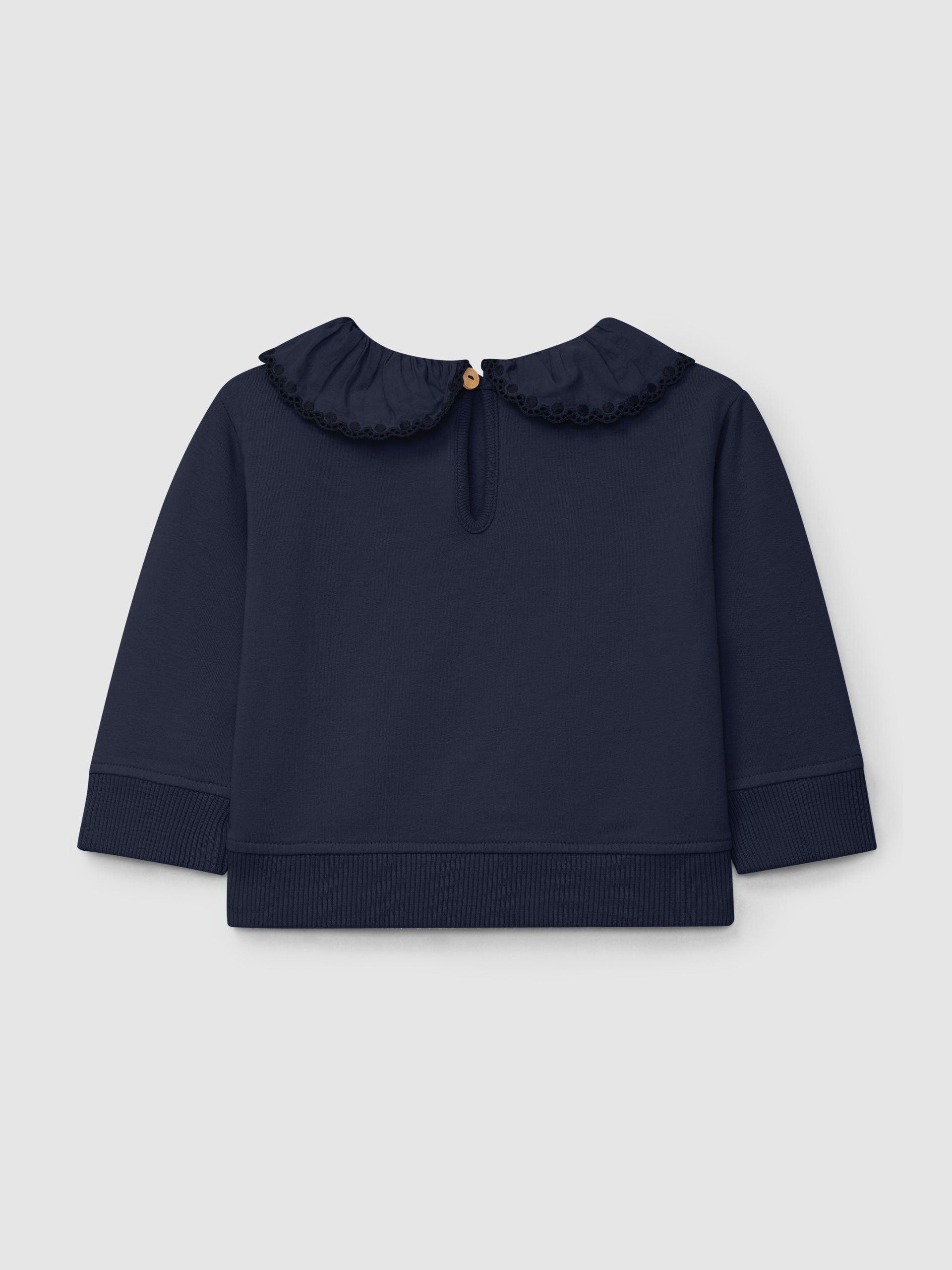 Sweatshirt in soft brushed organic cotton plush with ruffled embroidered collar.