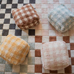 À table! This plush Vichy tablecloth-inspired pouf is a call for supper! Little ones can enjoy imaginative play in comfort sitting on one of these around their little dining tables. The perfect pairing for our Kitchen Tiles rugs in matching colorways and for many other pieces in our catalog. Spread the vintage kitchen vibe around the home!