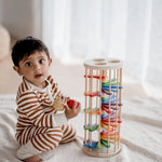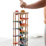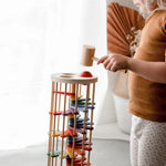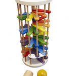 Pound the balls from the top and enjoy watching the colorful balls rolling through the rainbow track. This is a great toy for eye tracking and motor skills. All Qtoys are made of plantation timber using non-toxic materials.