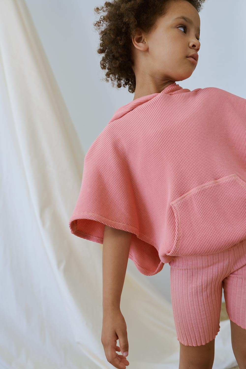 These organic ribbed shorts, made in GOTS-certified organic cotton, will keep your little one comfy and cool to play and lounge in. They are also very easy to mix and match with any of our summer tops. These organic ribbed kids' shorts feature an elastic waistband and lettuce-edge trims. They are made in 94% organic cotton and 6% elastane.