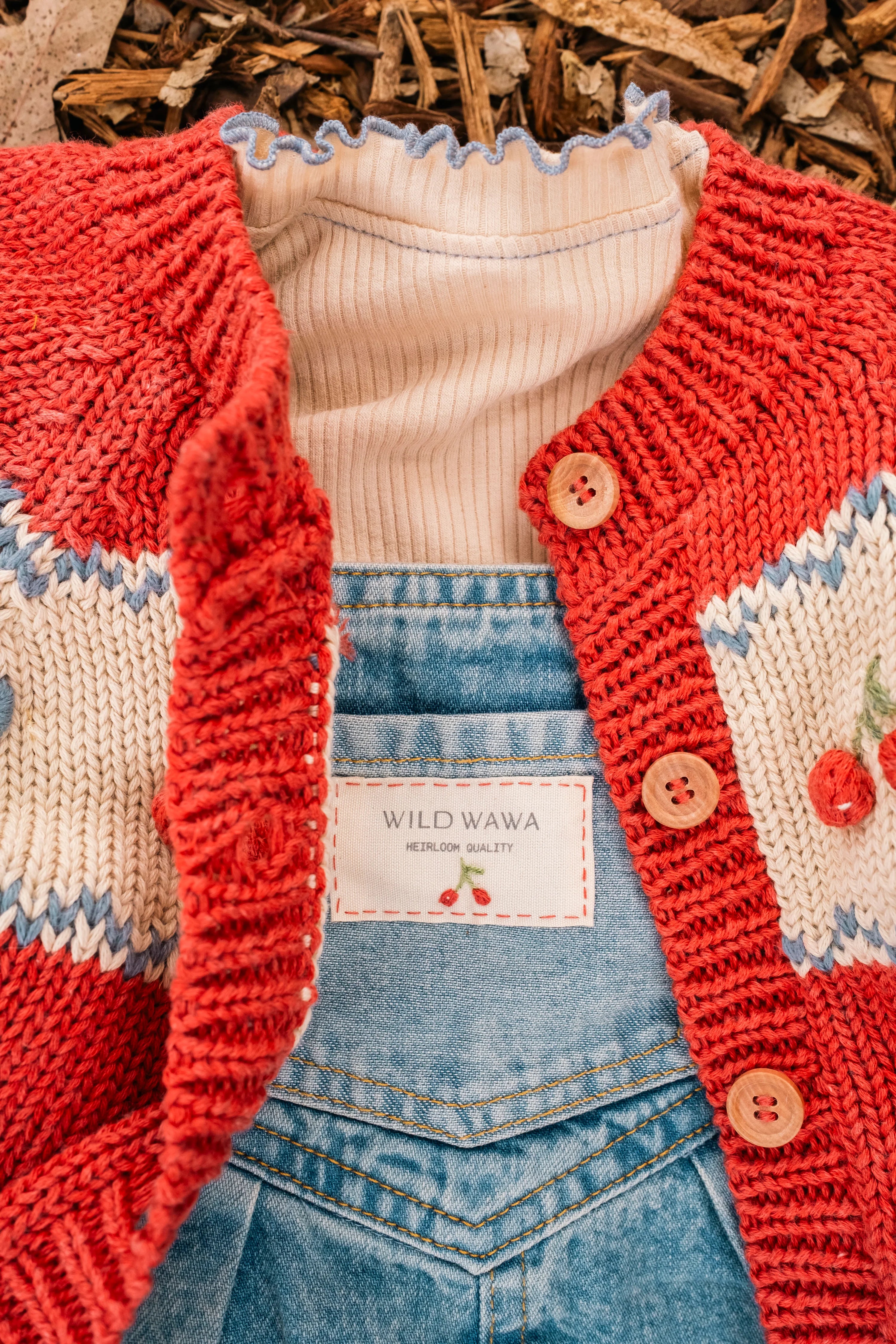 Coordinates beautifully with vintage-wash denim pieces featuring signature cherry embroidery.