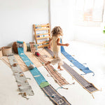 Having braided strings at the edges, it can easily be rolled and tied up together with the train cushion, converting into a practical briefcase for on-the-go adventures!