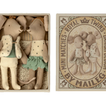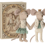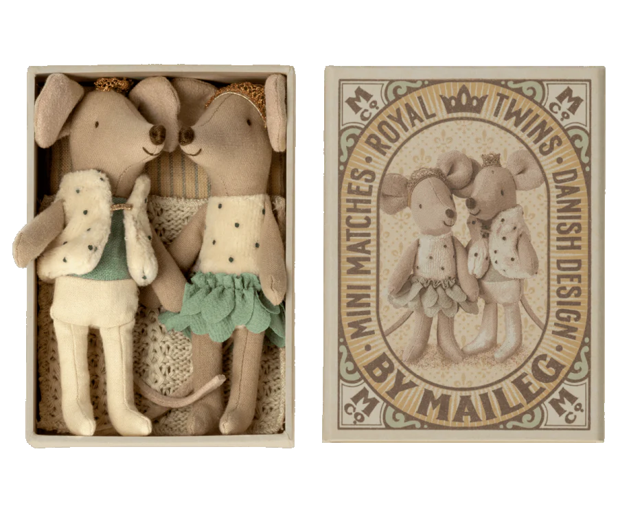 Make way for the royal heirs! This adorable duo’s outfits include complimenting accents, so they can always make a grand entrance together. They also share a customized matchbox that has their portraits printed on the top, how fancy!