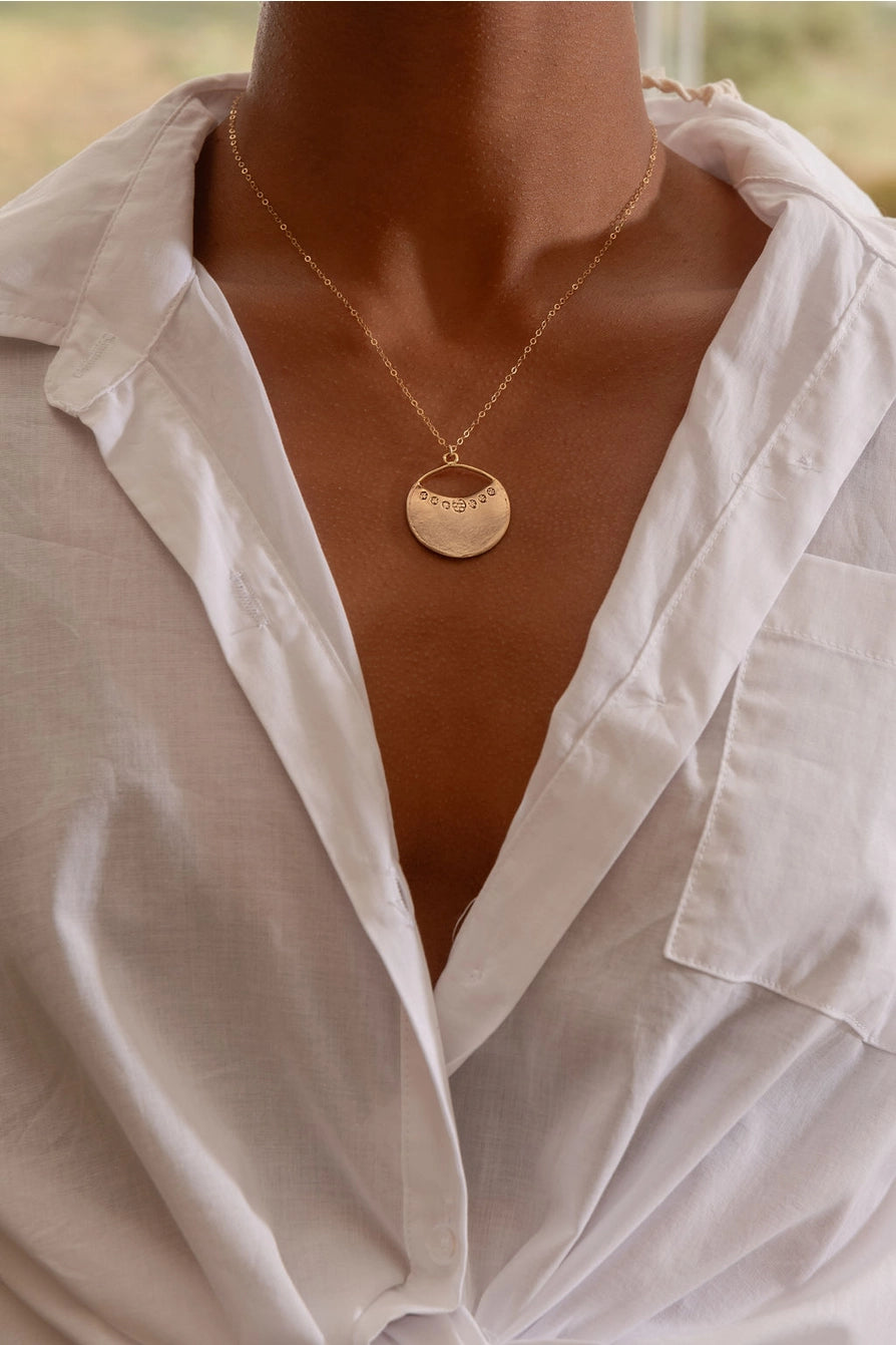 Inspired by the landscape and vibes of Santa Fe, New Mexico. This hand carved and lost wax cast pendant is your perfect everyday piece. Great alone or layered with your favorite necklace.