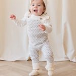 A beautifully textured piece for your little one, the Savannah Jacquard Onepiece in Sheer Pink features a delicate diamond knit pattern in a soft blush tone.