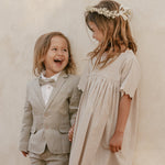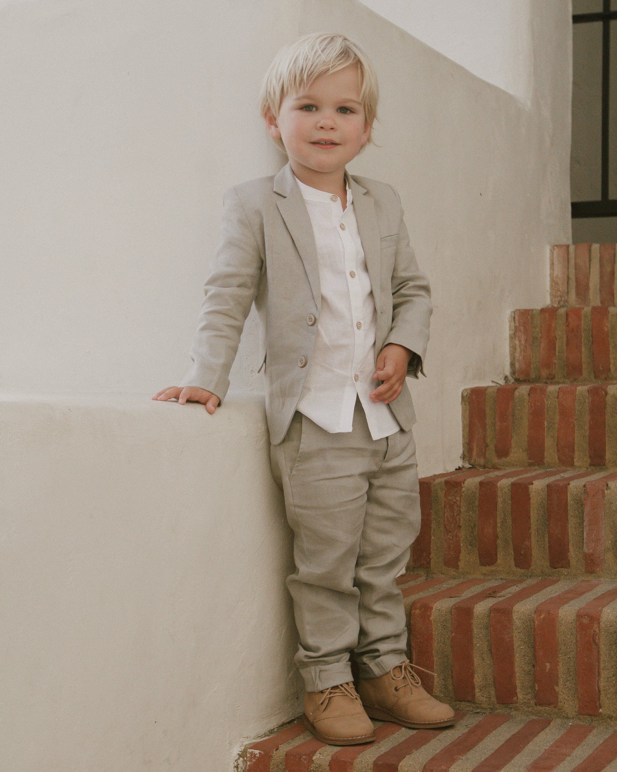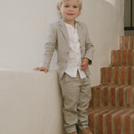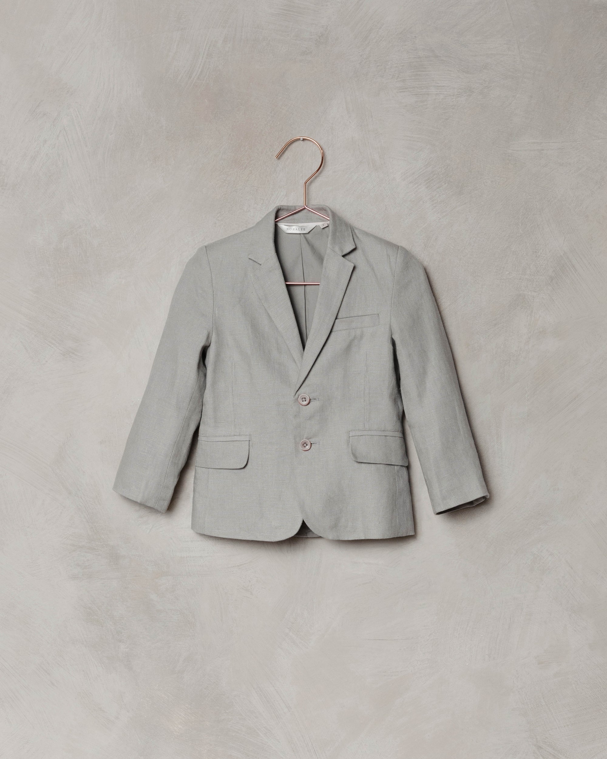 Single-breasted jacket in a soft 100% linen fabric. The ash colorway can be worn from season to season. Features notched lapels and tonal wood buttons at the front. Front pockets and vent at the back. Fully lined in coordinating soft cotton.
