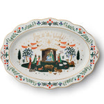 Perfect for holiday gatherings, this porcelain tray features intricate, nativity-inspired illustrations, metallic gold accents, and a gold-painted edge.