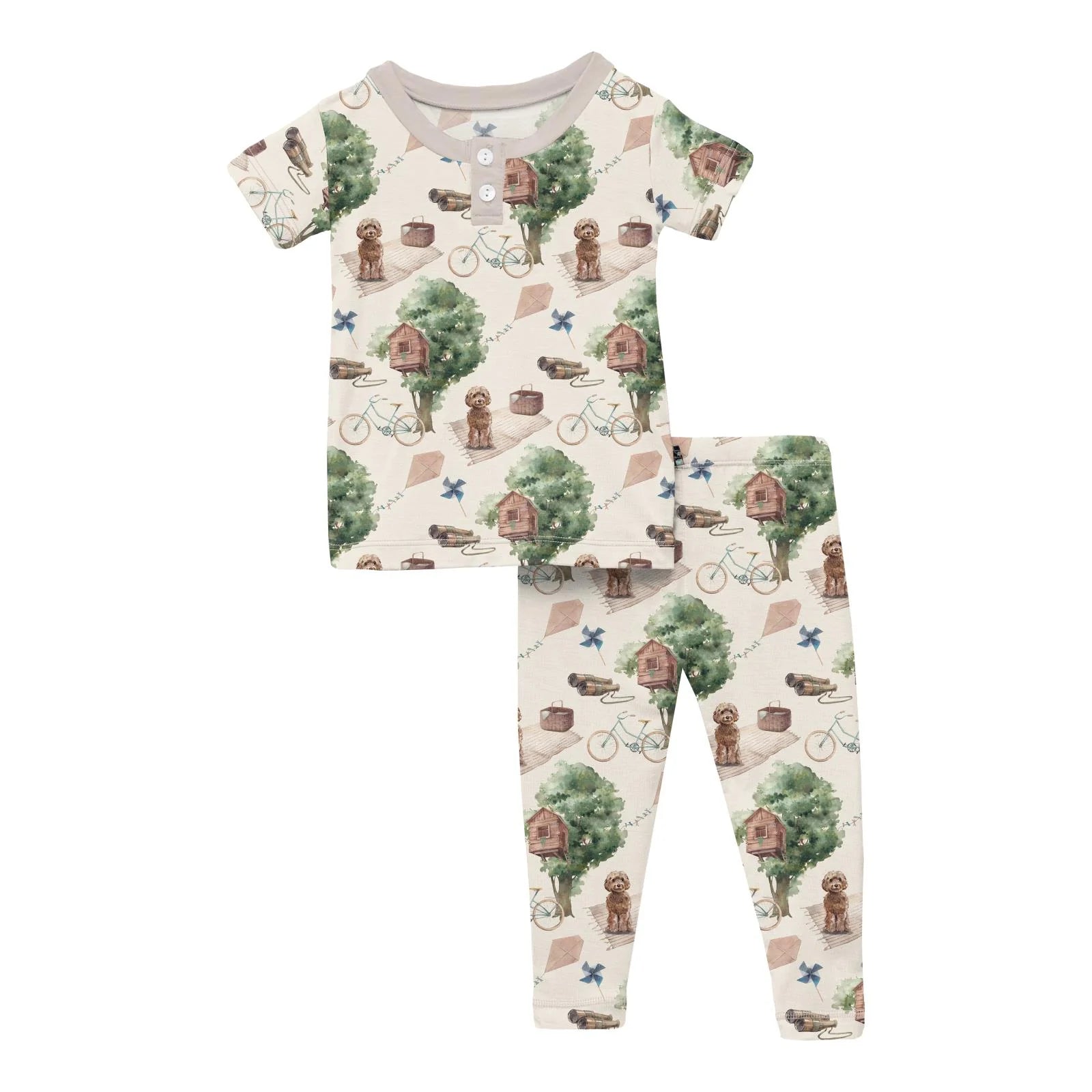 Short Sleeve Henley PJ Set || Natural, Tree House