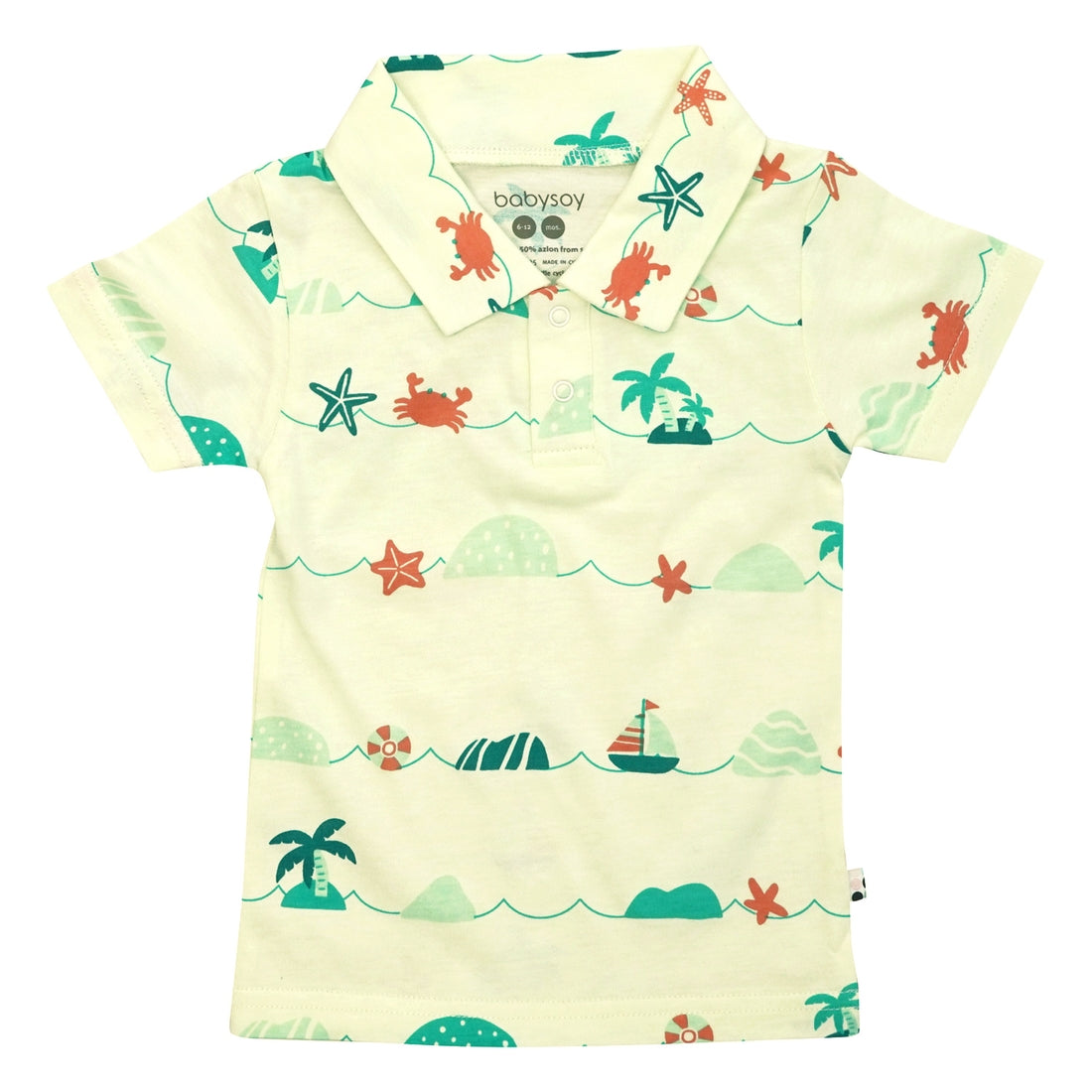 Classic style at its best. Celebrate this spring and summer and be selfie-ready with our short sleeve polo tee. Made with lightweight 50% organic cotton and 50% azlon from soy which has porous structure to allow more moisture transmission to keep baby and kids dry and comfortable.