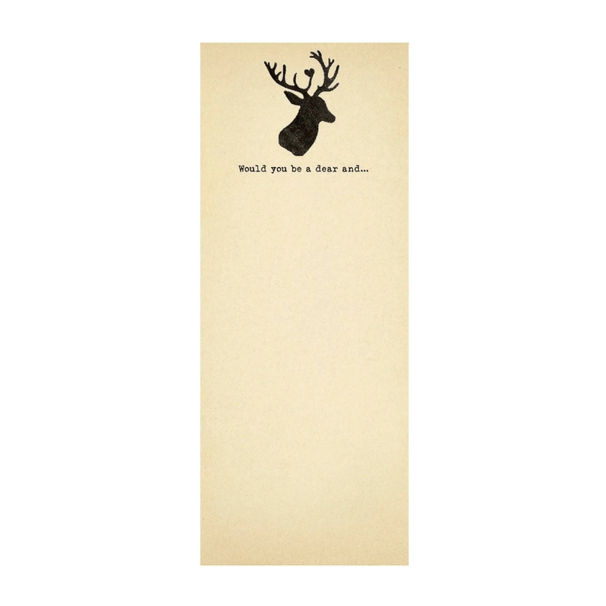 Perfect for a to-do list, this unlined notepad features a deer at the top with "Would You Be A Dear And" written on each page. No one can say note to on this notepad! Pages can easily be torn off and stuck to a fridge or tucked into a notebook or planner.