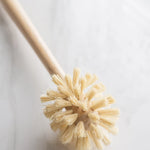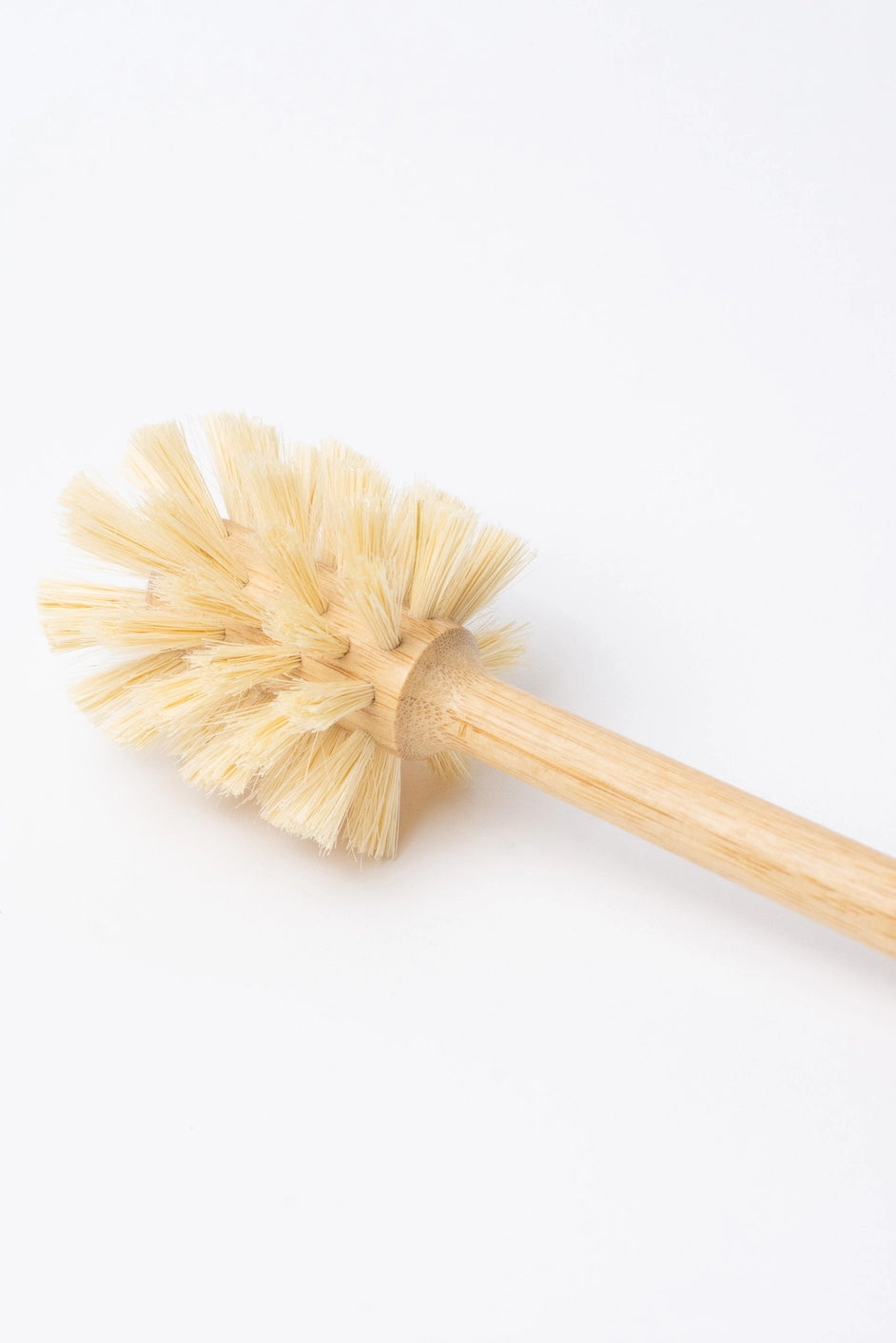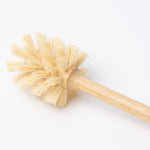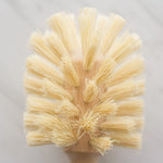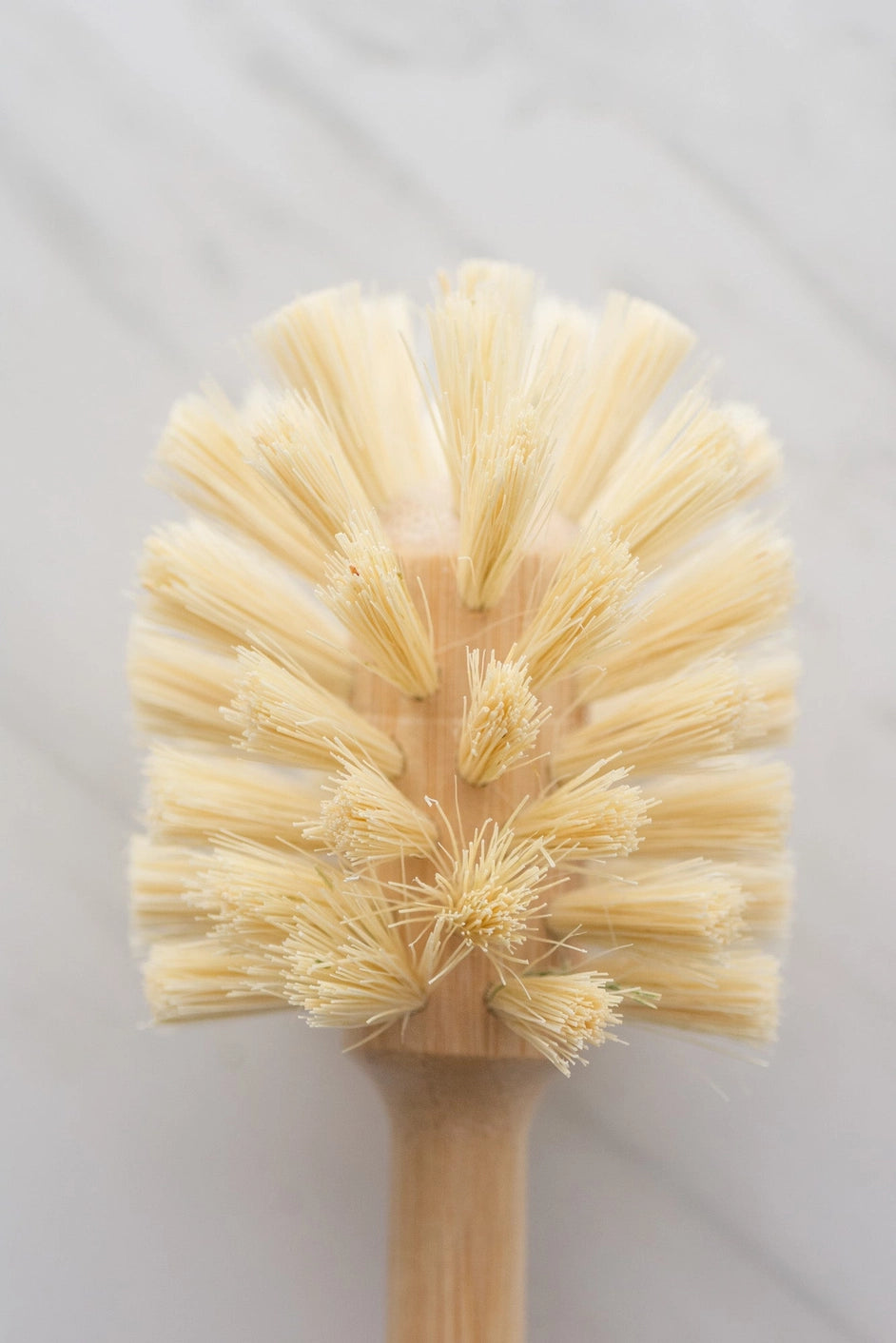 This brush works great for dish washing, scraping food off plates, and have a sturdy bamboo handle. Because the bristles are on all sides of the brush head, this gets into cups, bowls and pots better than the replacement head brush.