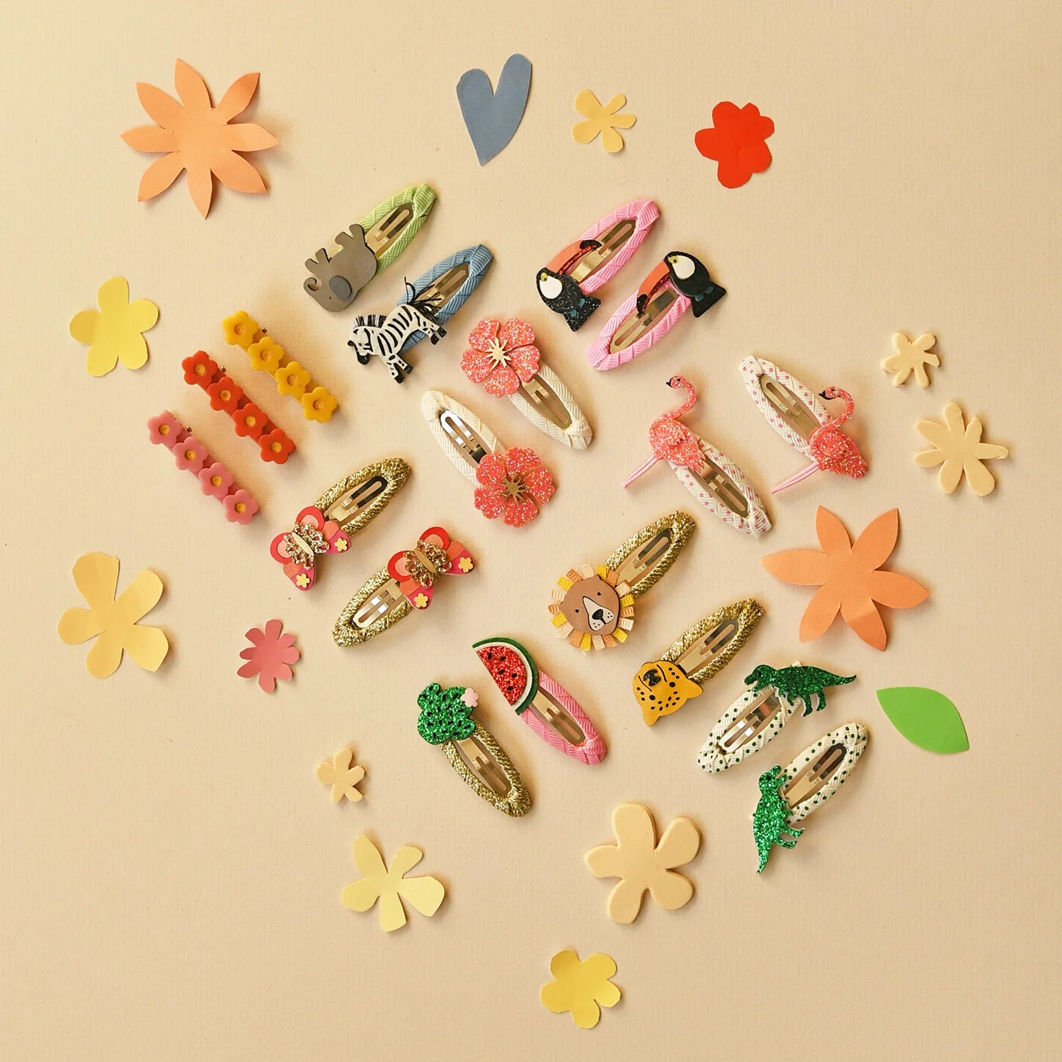 These two glittery dinosaurs on spotty grosgrain ribbon wrapped snap clips are perfect for any dinosaur lover! Totallyroar-some!