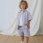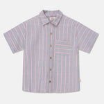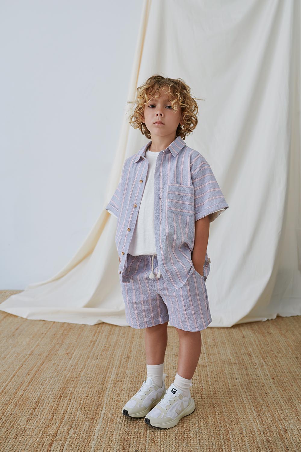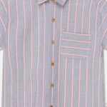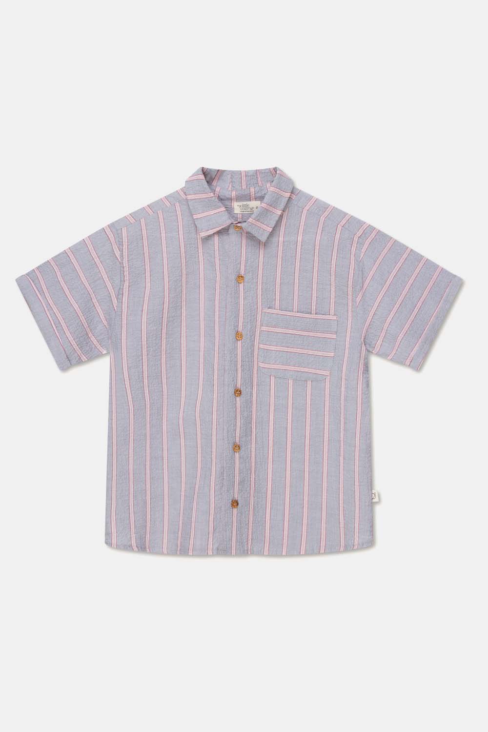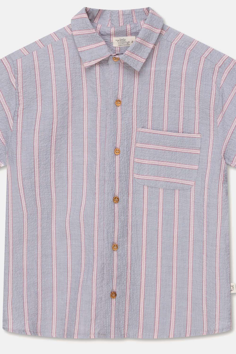 Warm weather calls for tops that will keep your kiddo looking and feeling cool, like this short-sleeve striped seersucker shirt. This one features a spread collar, buttons at the front, short sleeves, and a front patch pocket. It is made in 99% cotton and 1% spandex, with a fabric that supports the Better Cotton Initiative's mission.