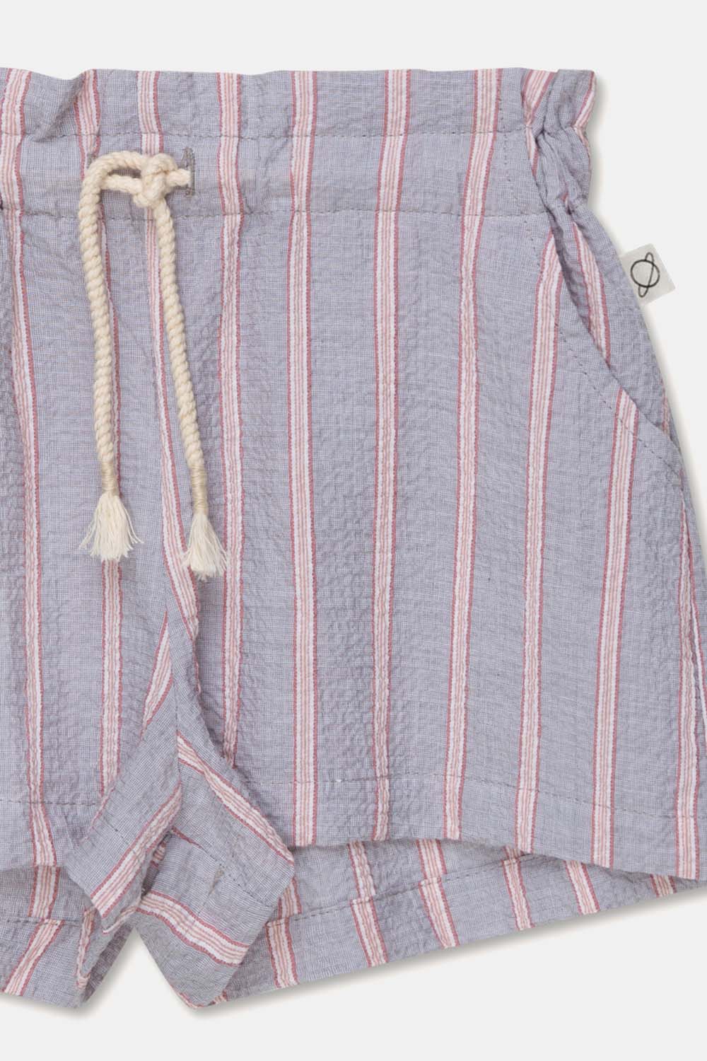 Trust us. Your minis would wear these striped seersucker shorts every day if they could. Super fun, comfy and stylish. Pair them with a simple tee and espadrilles for a beach-chic look or dress them up with a crop top and sandals. These striped seersucker kids' shorts feature an elasticized drawstring waistband and curved slip pockets. They are made in 99% cotton and 1% spandex, with a fabric that supports the Better Cotton Initiative's mission.