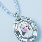 Designed to celebrate your unique spirit, this enchanting accessory features an icy blue rope cord and a dazzling crystal locket pendant.